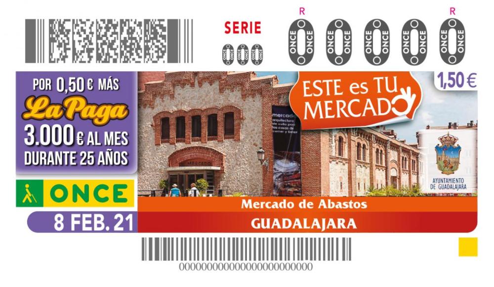 La ONCE ha dedicado su cupón del lunes 8 de febrero, al Mercado de Abastos de Guadalajara, perteneciente a la serie ‘Este es tu mercado’. Así, cinco millones y medio de cupones han difundidon por toda España la imagen de este mercado.