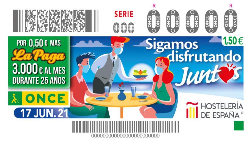 La ONCE dedicó un cupón en apoyo a la hostelería para que ‘Sigamos disfrutando juntos’